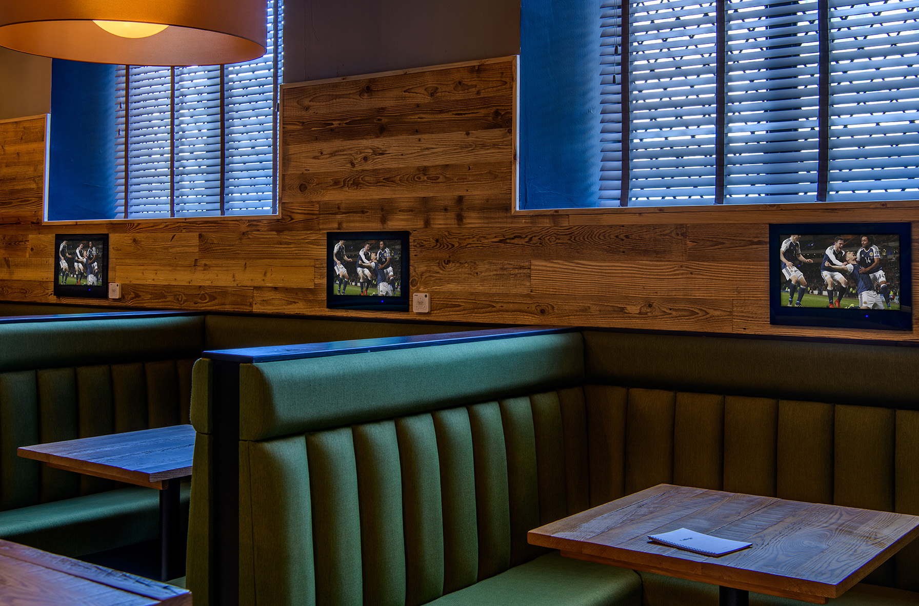 Plus, we have another two large screens and individual screens within our booth seating and at selected tables.